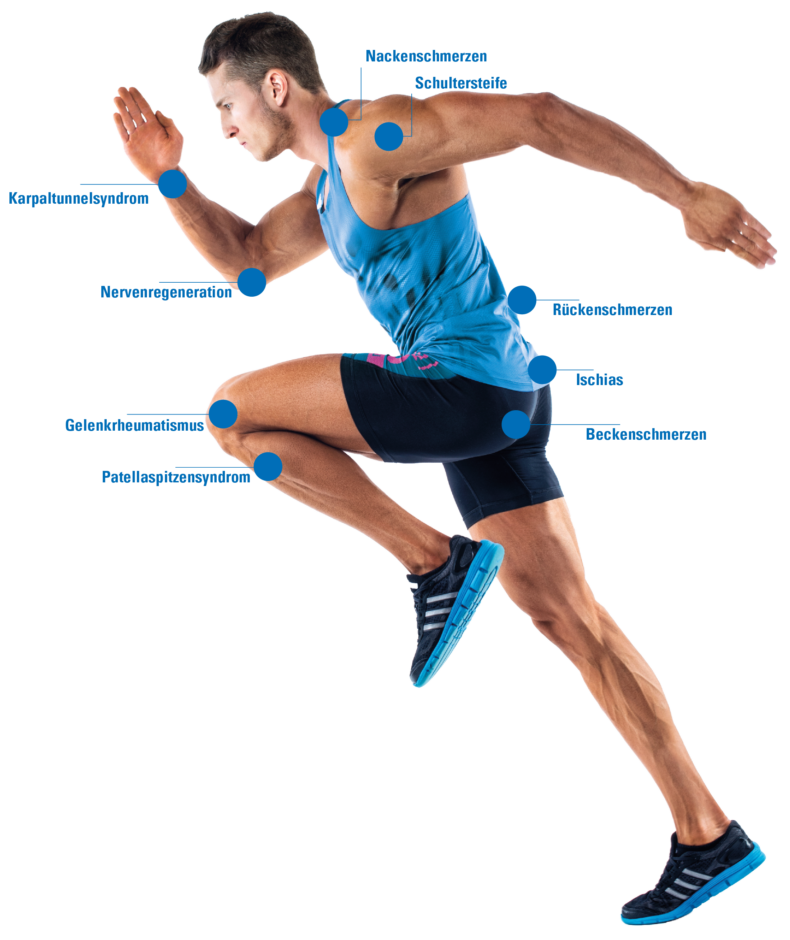 Neben der effektiven Schmerzbehandlung wird die Hochenergie-Induktionstherapie häufig eingesetzt, um den Muskeltonus zu beeinflussen, die Durchblutung zu verbessern und den Regenerationsprozess zu aktivieren